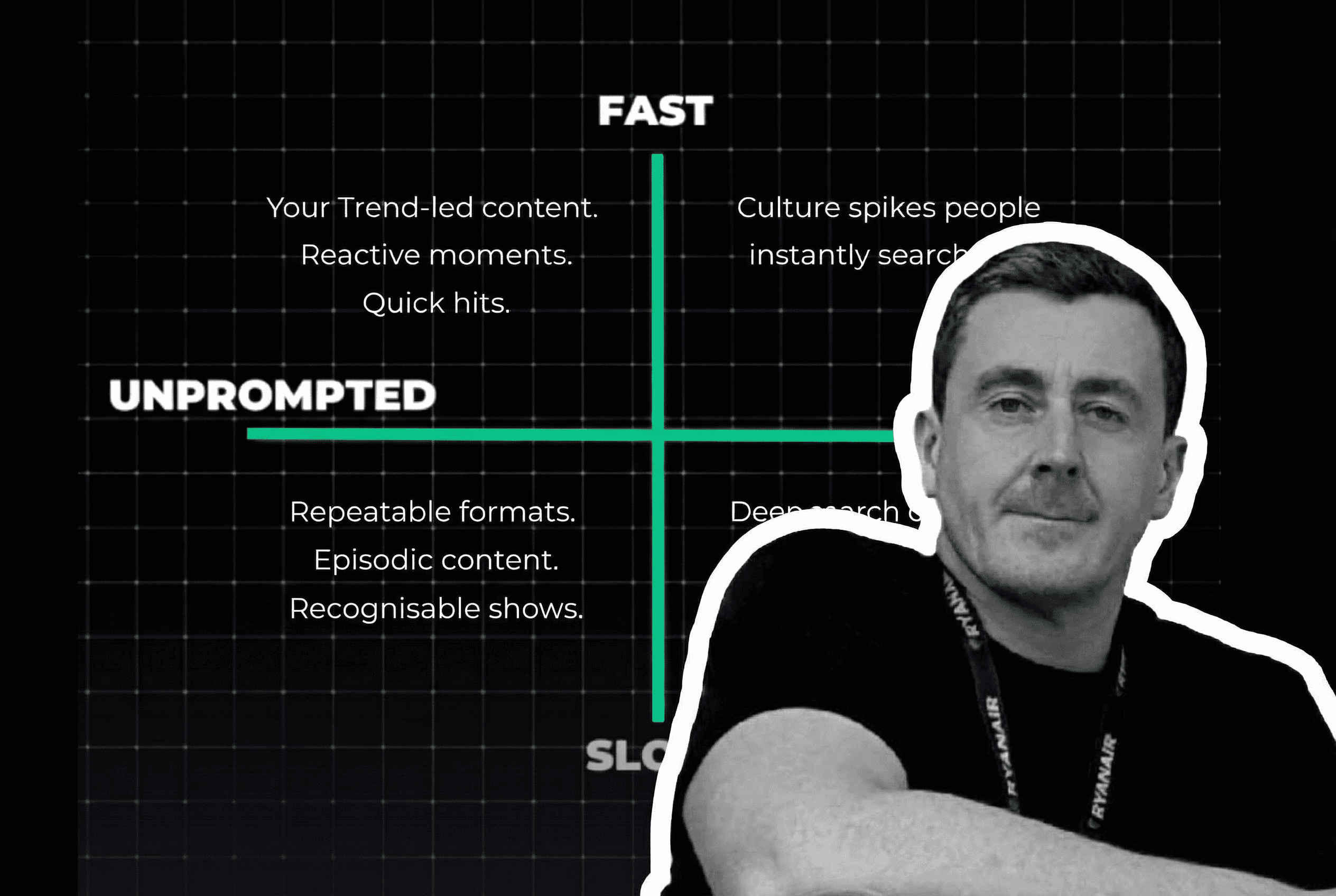 Slow unprompted: Repeatable formats, episodic shows, recurring characters. Content people recognise before they even read your name.
